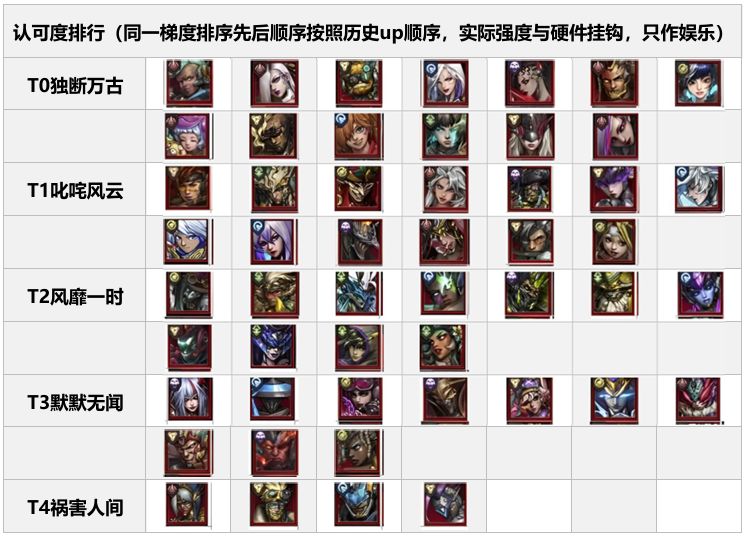 认可度排行,同一梯度排序先后顺序按照历史up顺序