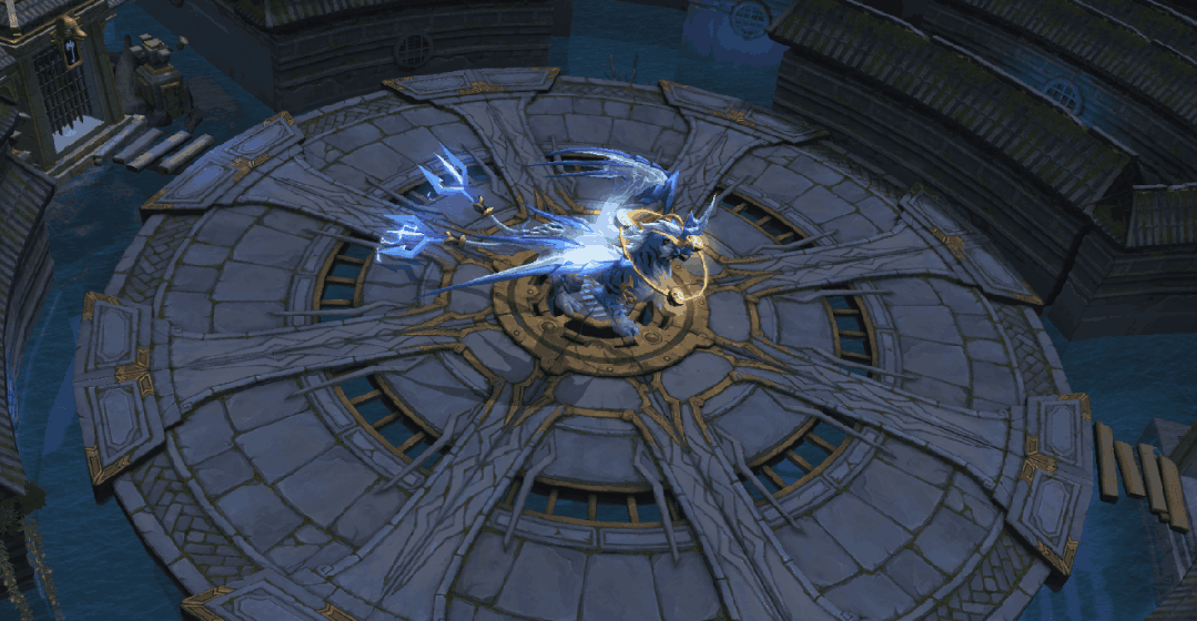 惊雷幻寅虎原地进行施法,向外扩散多个雷环,每个雷环在扩散到最大程度后将引爆,造成环形范围伤害。