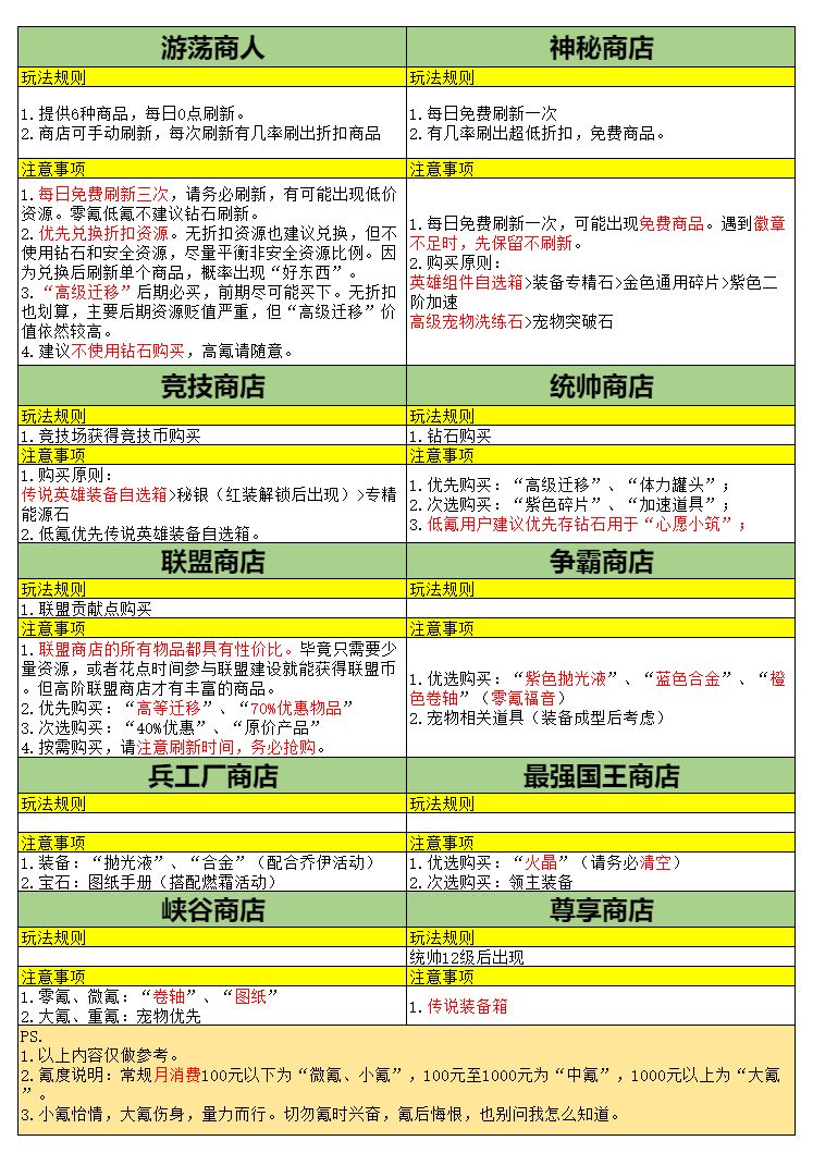 小游戏里我加入了一个氛围非常活跃的联盟,这里分享下给联盟萌新朋友做的攻略表。