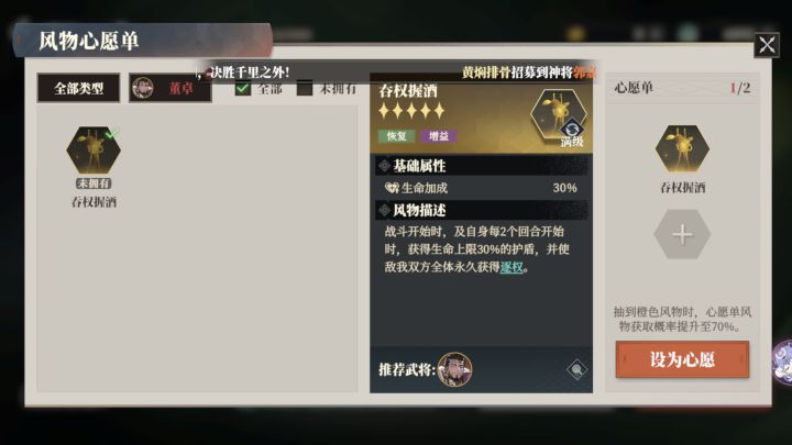 这里我设置的心愿是,群体免伤20%的“吞泉握酒”和单体免死的“片石枕江”