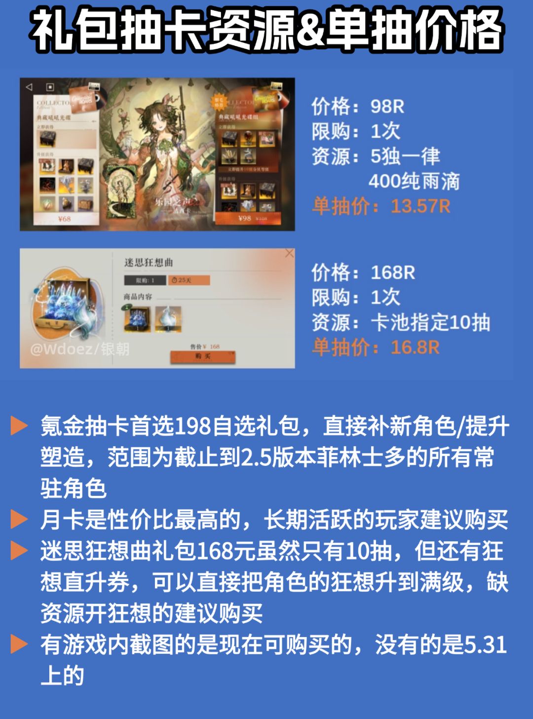 3.迷思狂想曲礼包168元虽然只有10抽,但还有狂想直升券,可以直接把角色的狂想升到满级,缺资源开狂想的建议购买