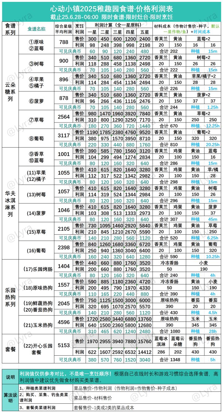 稚趣园食谱售价利润+Top20排名(含庆典币)