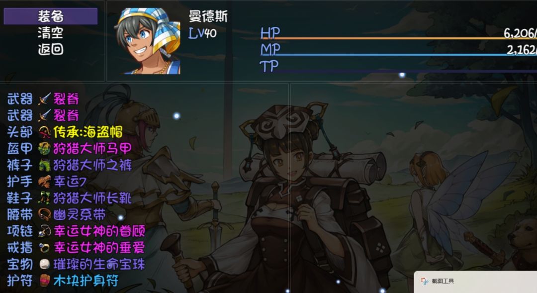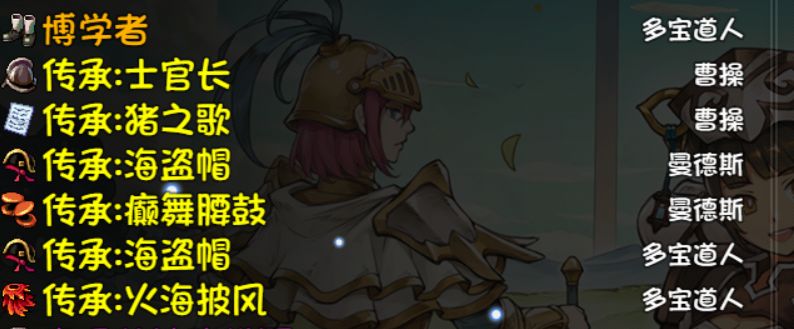 由于上一个档玩的是东天队,然后去天之上后有点懵逼,于是重开了一个档,号角基本都留着,就只开了个王子凑2掉宝发育。打算通过15层之后玩宝藏队试试。玩了2天也是过了15层了,曹操1阶,周2阶,多宝1阶,(王子白板)因为不知道4号位要玩啥,以前的攻略里面看了半天也没看到当前阶段4号位真正合适的人选,有说丸子的,有说王子的,有说丁一修的。要是有大佬知道麻烦可以告知一下。就是不知道直接用43级的宝藏队打深渊和冲层能不能打的过。分享一下我通过15层的人物和装备吧,上个档没记录,这个档还是记录了一下。有一说一士官长头盔和腰鼓爆率真的很低,15层通过后用4宝藏队加4女神套,4幸运7,4海盗帽分别刷了2个小时左右才出