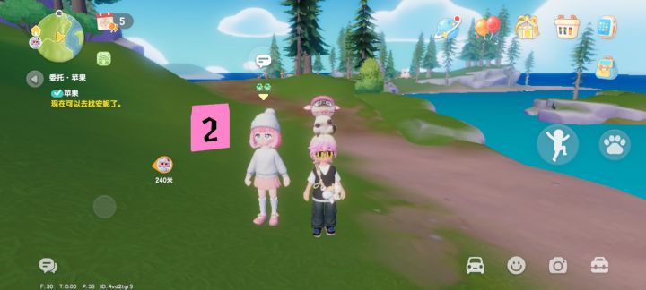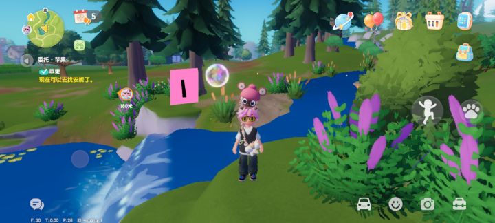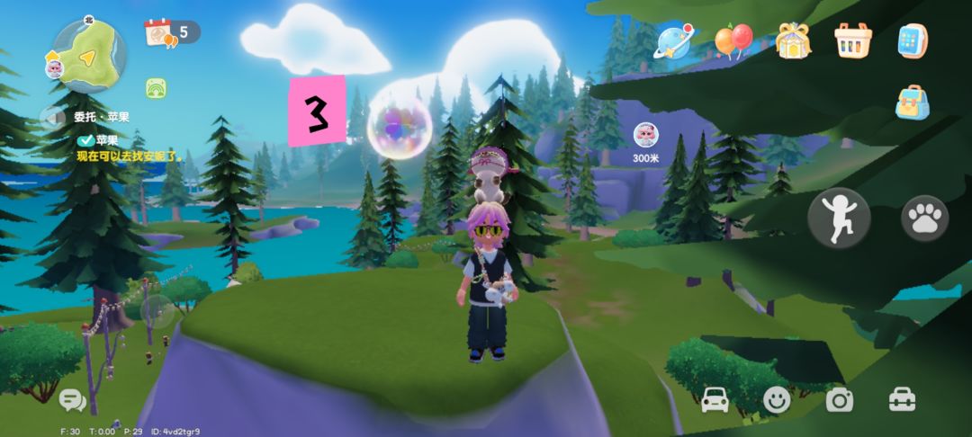 彩虹花3朵分别在①家园邮箱上空,②靠近10号家园旁的森林湖,③森林岛的岩石上;彩虹朵朵位置在森林岛入口(所有位置在黄色标记)