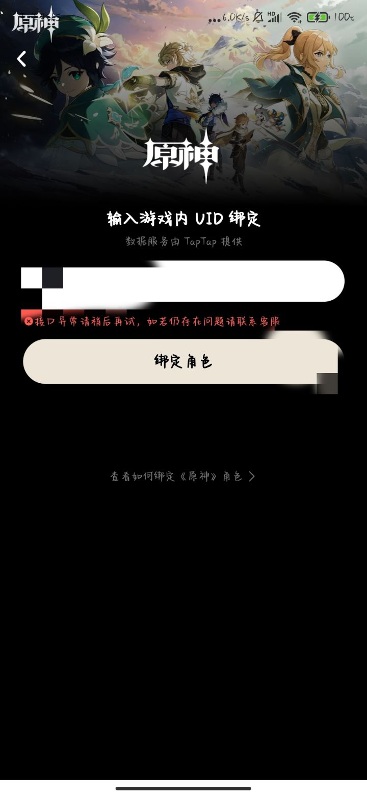 如图,我昨天想去绑定我原神账号,但是不知道为什么记得绑定不了,显示接口异常,试了好多次都不行