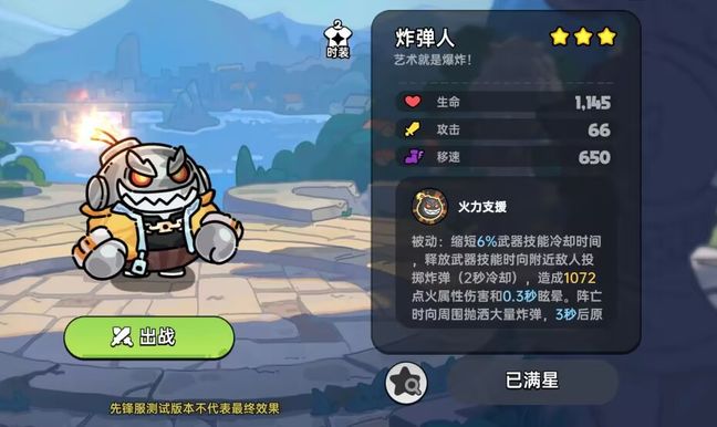 优点:炸弹人相对其他角色,在有技能时,相当于多了一条命,有更大的生存空间,而且其减少武器技能冷却则可以使武器更快的释放技能。无论是刷BOSS还是打团战均有不错的效果。