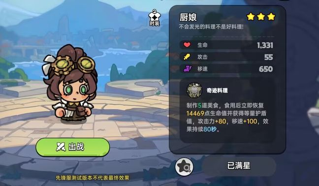 厨子作为PVP和PVE的人气角色,作为PVP可以打架前放饭增加护盾和攻击力,打架后放饭可以迅速补充状态,作为PVE角色,可以增加BUFF供队友提高输出,也能给队友更好的生存条件,也是游戏的看板娘。十分的可爱捏。