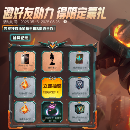 奖励:iPhone 16 Pro max手机,随机周边手办等好礼