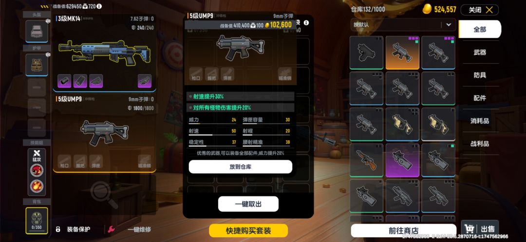 除非你有十足的把握可以诛仙,不然一遇挂就老实,简单按图4出(4级妹控打把boss修一次都得11w,别用),打小boss一般两梭子就秒,达达170发左右也秒了,可以看到boss掉的5级武器都是有词条的,但巨坑的是大部分枪战备基本都在40w以上,也就是不能进简单,5级词条枪够多可以去困难打boss赌龙晶,钥匙可以多搞,钥匙宝箱出神话和珍宝概率很大,一天20个箱子基本可以出