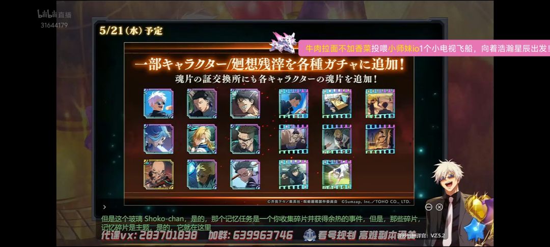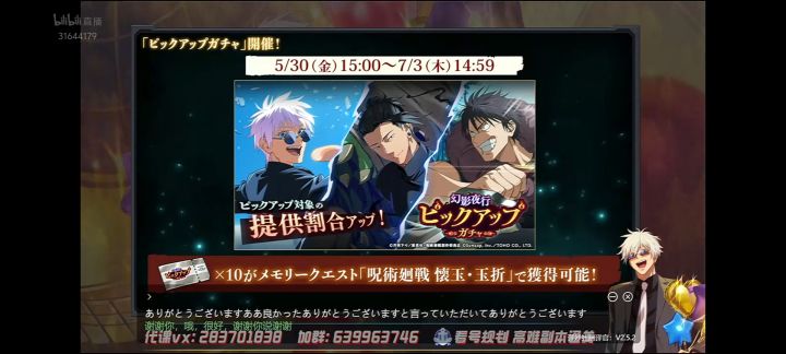 从左边开始,分别是夜青年硝子、夜觉醒五条、怀玉三杰返场,普池角色和回想的增加、周年付费池子和回想、zone虎返场、第四个幻影币兑换的角色增加。回想就不多说了放图大家自行看一下就好,反正也还没知道效果