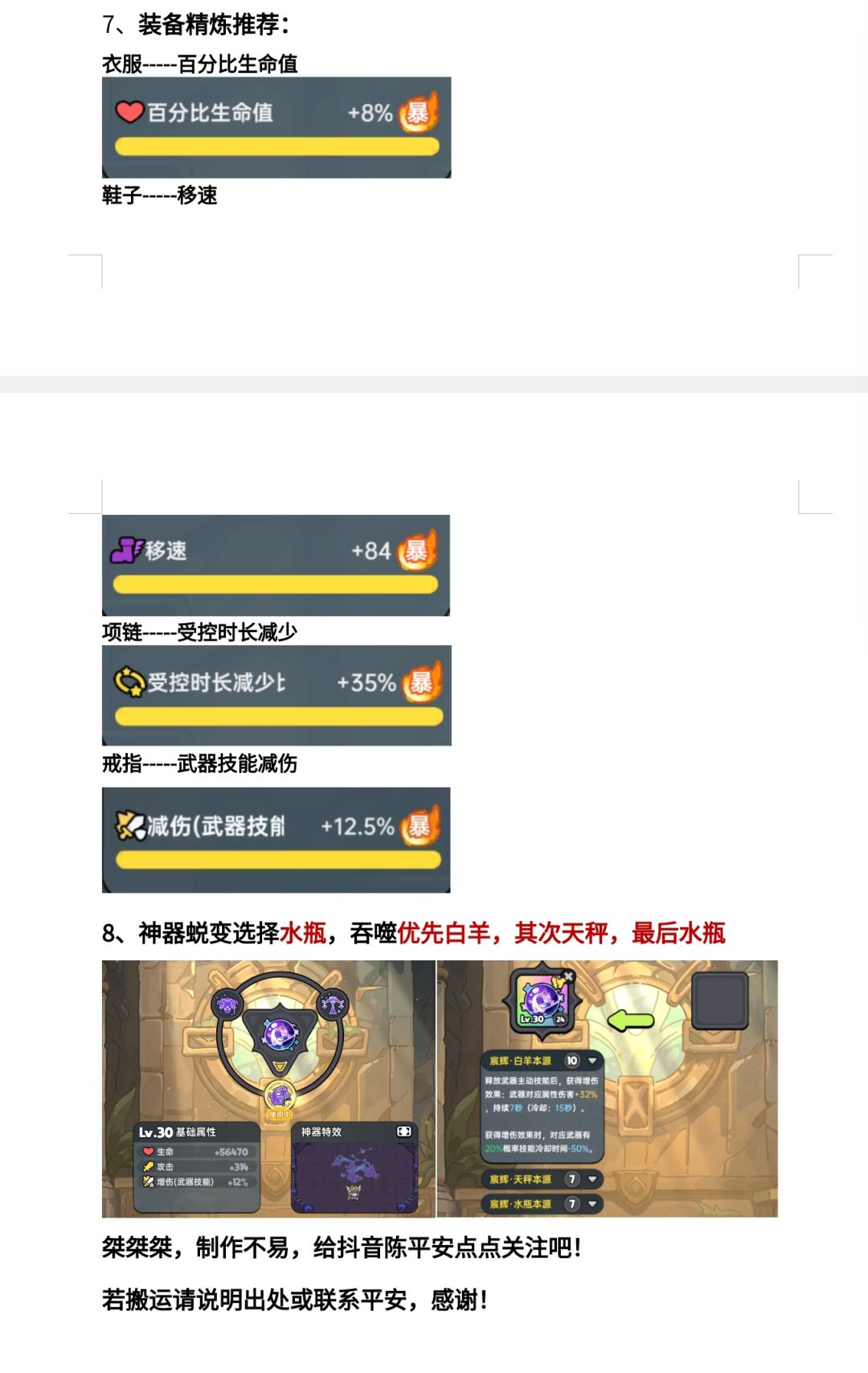 ⭐️装备精炼词条推荐和神器佩戴推荐。