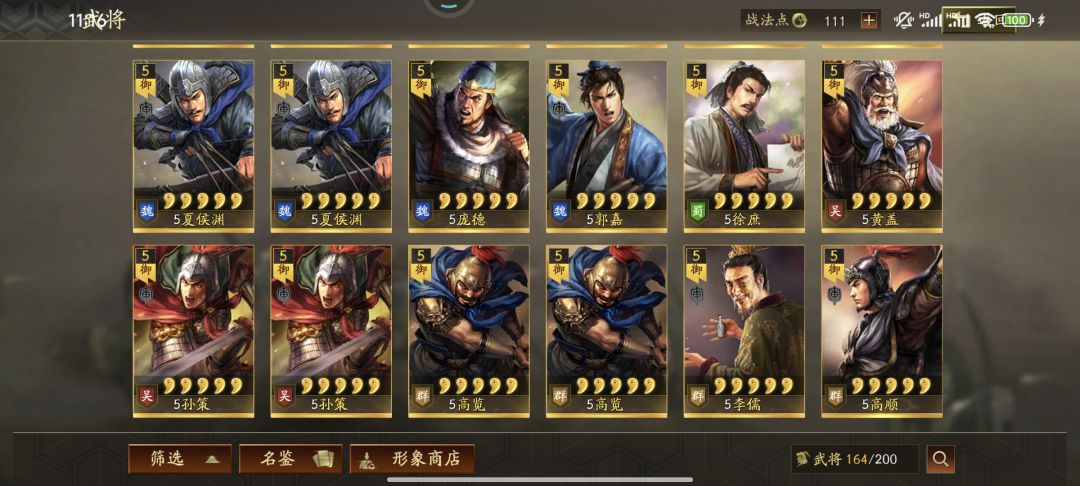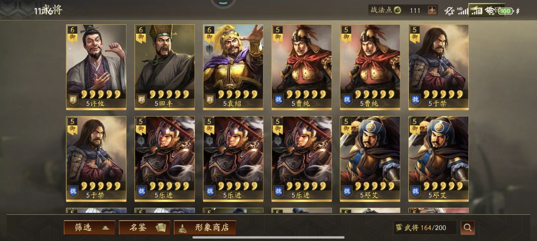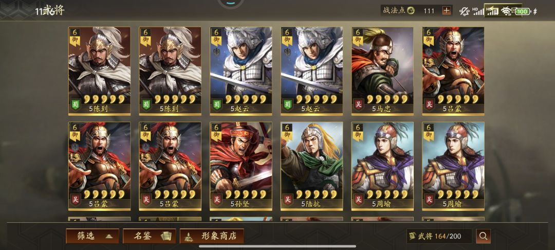 剩下想咨询大佬还可以组什么队伍。战法除了刮骨疗毒和卡包还没出到的战法,其S战法和A战法基本