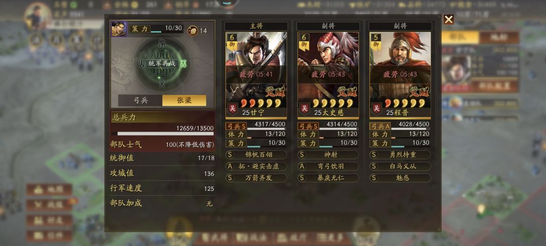 第二队是甘太程,少了个折冲御侮,其他按攻略来的,不知道战法搭配有无问题。