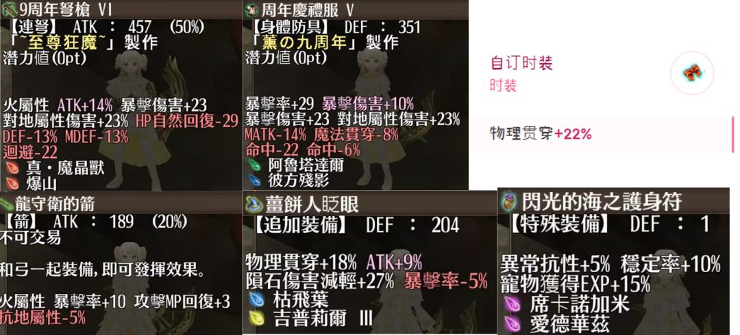 物理贯穿:10(真魔)+5(彼方)+18(姜饼)+22(时装)+25(背刺)+10(穿甲油)=90 (弩箭不算背刺那部分,也就是75)