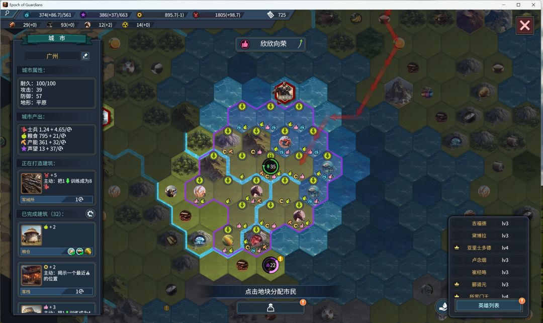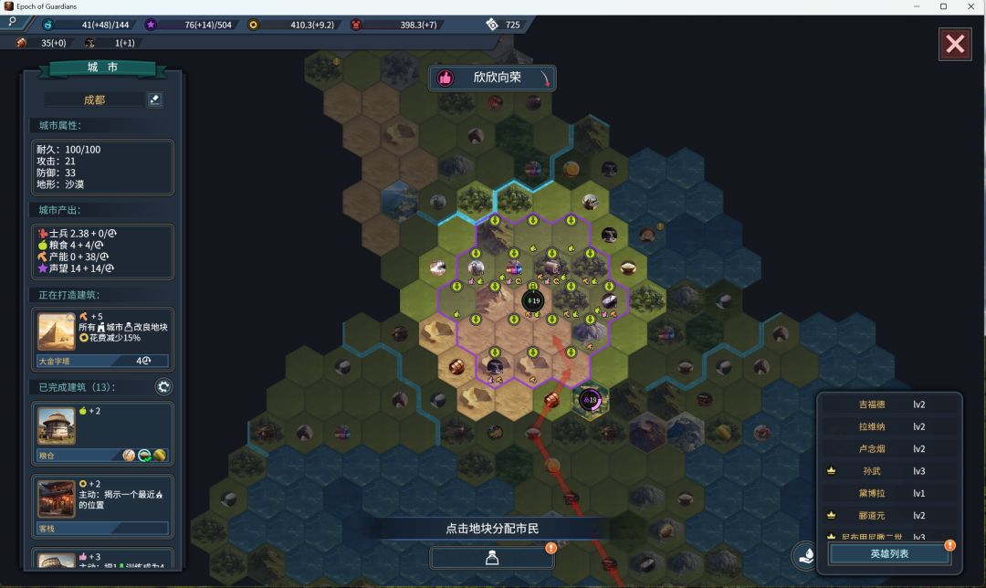 拿完前四个英雄后,第五个和第六个可以拿孙武和独裁,远古入侵的时候派他俩出船刷刷等级,这里有个小技巧是独裁等点出桨帆船那一回合再拿,古典时代下刷新的英雄初始属性会更高,我们的目标是尽快升三级点出2级独裁并升华。