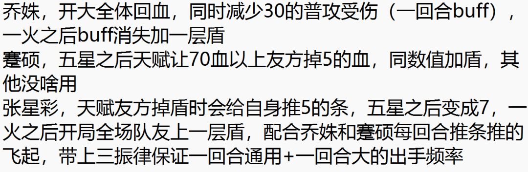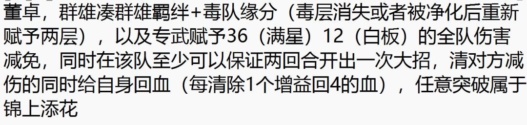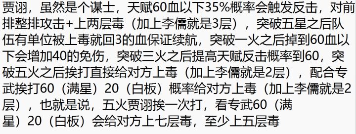 这时候来看队伍的状态组成,董卓专武附带的减伤+李儒被动赋予对方的增伤减少(这玩意据我个人观测应该就是减少伤害),同时贾诩只要掉到60血以下就有40的高额免伤,以及专武给予的10免伤,同时,队伍里蹇硕,星彩不停加盾,乔姝不停回血及加盾,整个队伍又肉又有伤害