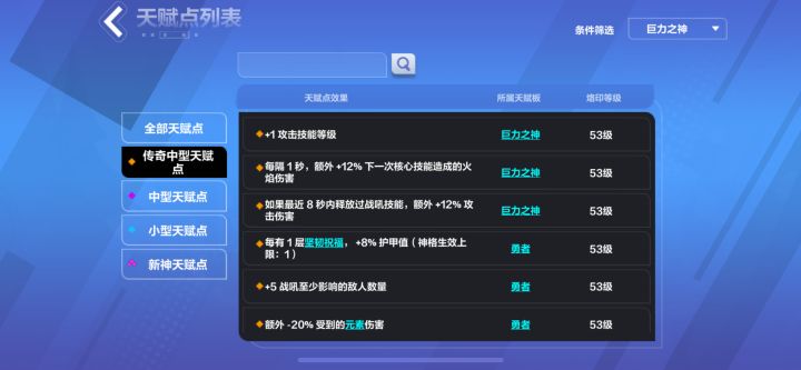 由于对我们有大用的传奇天赋都在巨力之神里,