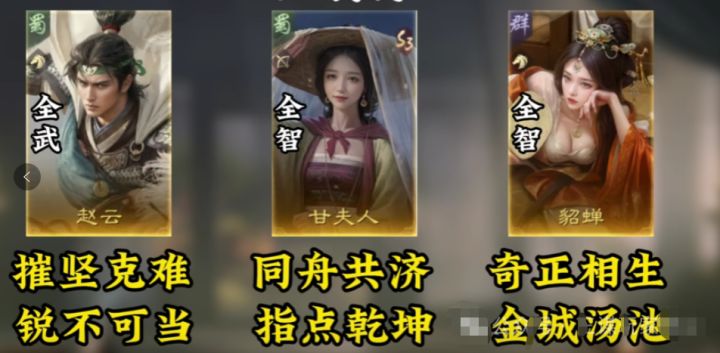 S3赛季,貂蝉回归,赵甘封神。阵容由甘夫人、赵云和貂蝉组成,是闪避混乱队。貂蝉能偷猎混乱敌方武力最高单体,这个阵容很适配S3赛季针对主流主动/追击队伍的环境,在战场上地位超重要。