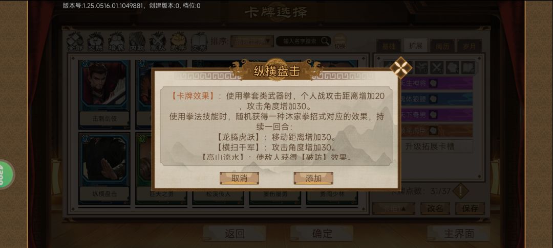 纵横盘击 最近获得的蓝卡 对于拳法很友善 看需求 有需要就带着