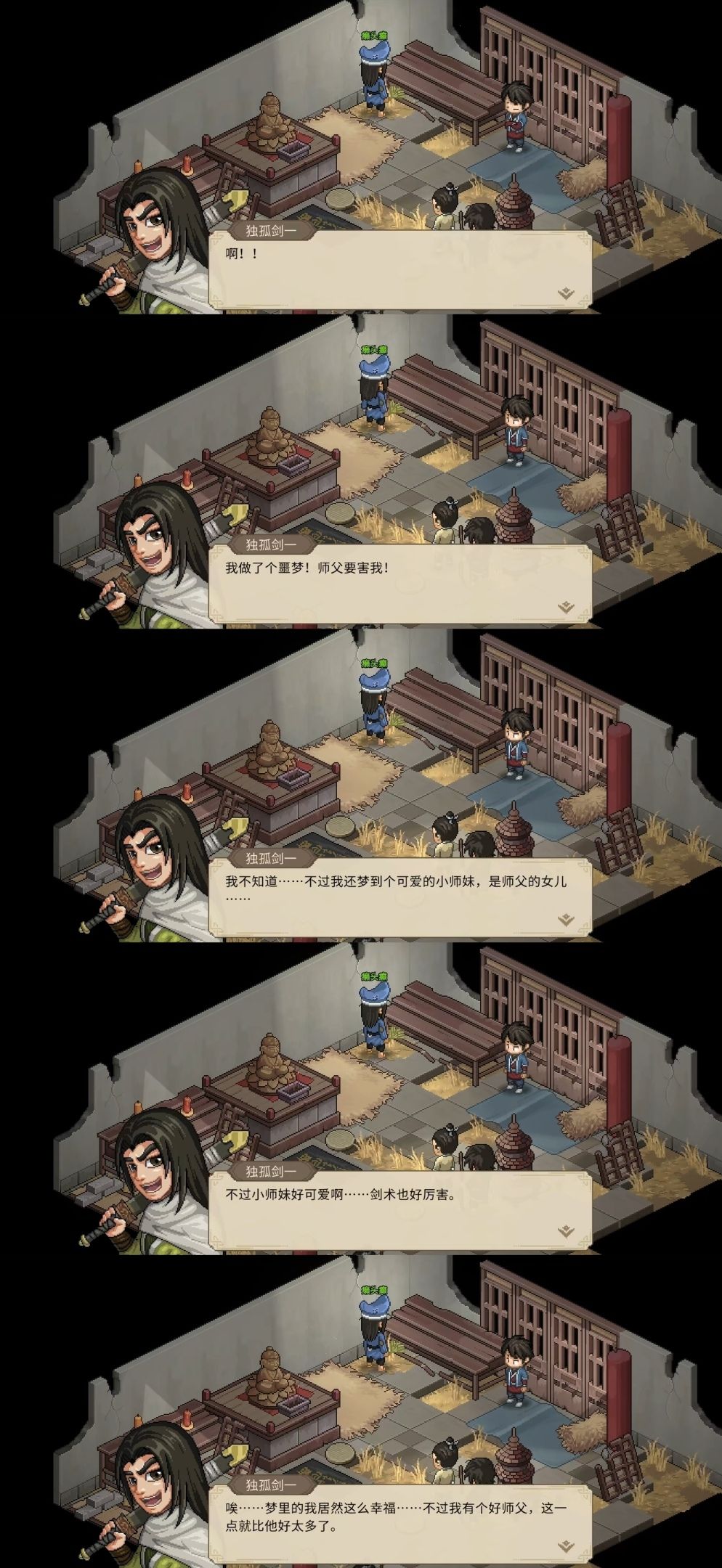 独孤剑一则是《笑傲江湖》中的令狐冲,梦里的师傅自然就是岳不群,师妹岳灵珊。名字上其实也能看出来,令狐冲学得就是独孤九剑。