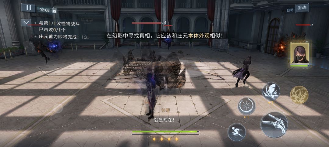 这流浪体会幻影分身,必须找到外观相似幻影,12秒内击败,如图五,正好是左下角这个,我随便打的,所以不清楚我找对没有,然后开始打本体,因为面板太高,击破幻影后就秒过了,哟,会在多少层遇到这个流浪体呢?3只找一只幻影,好了,刚才试了一下,要找对幻影击破才能成功,不然就得致命一击,如图4,刚才运气好一点,歪打正着
