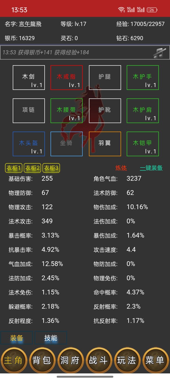主角修仙3年。主角境界【炼气2层】。主角等级【17级】。挺好玩的,福利也多