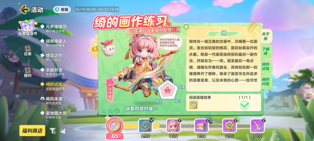 点开“活动”页面 在“元梦喵喵节”栏中找到“绮的试炼”