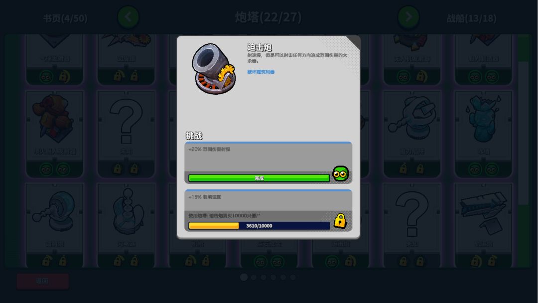 - 范围屠戮:射速缓慢但单发伤害惊人,爆炸范围远超常规炮塔,一发轰爆一片僵尸!