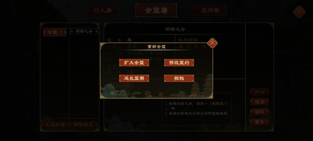 首先把这些国家全部会盟起来,现在整个天下全是我的附庸你也可以威压,那个图放不了了反正把这些国家好感拉满拉进来,然后打之前“换地”把路铺到他家“首都”旁边把“军队”调到那里去,可以两国同时进行,用最贵的城池跟他换反正没事灭了他一样能回来![[表情_酷]](https://img.tapimg.com/market/images/edd50e702f508971043f5619f686740e.png)