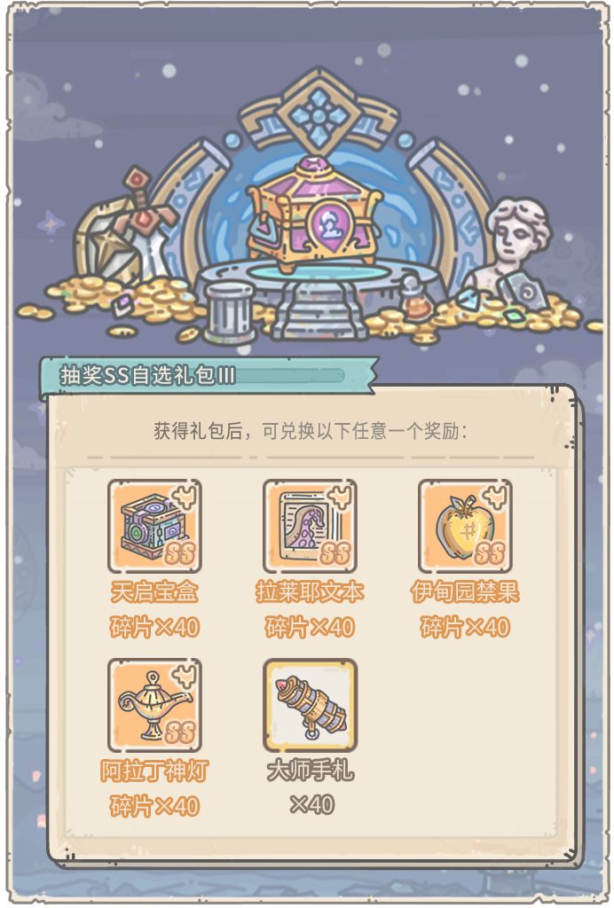 特别说明:可选橙色SSS贵重品碎片×40的可选择内容为