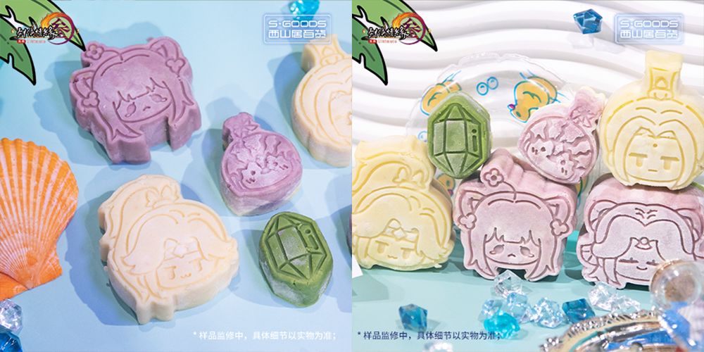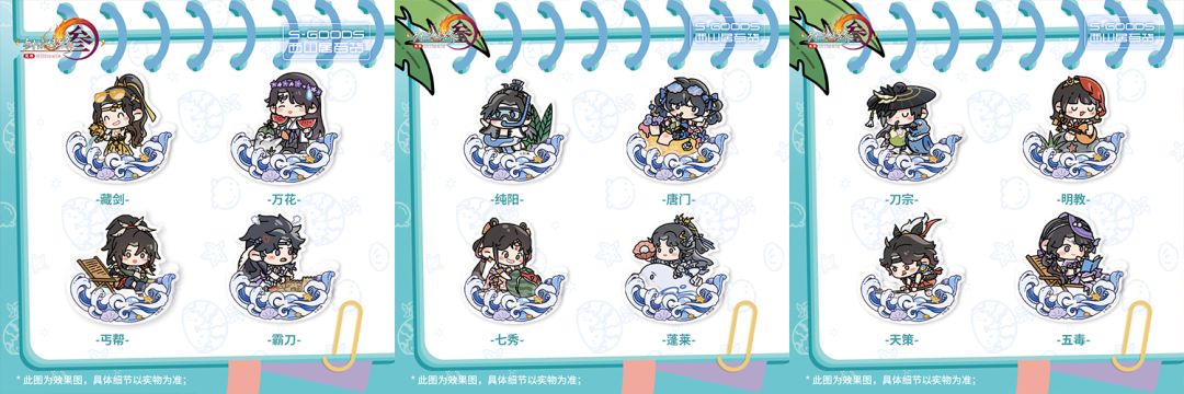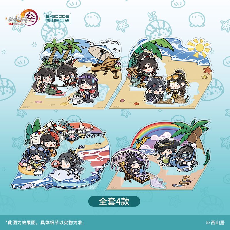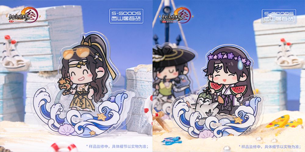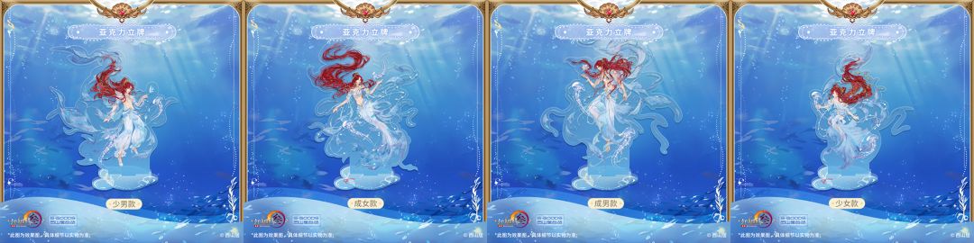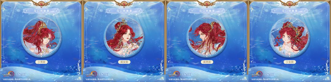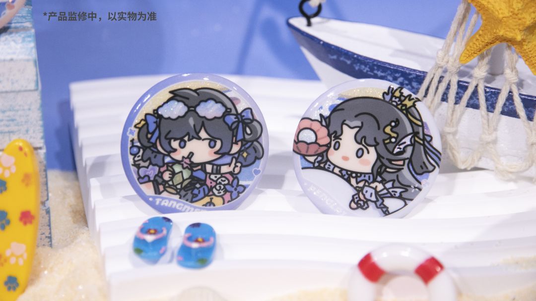 鲛海绮梦系列:双闪马口铁徽章(共4款)/收藏镭射票(共4款)/收藏小卡(共4款)/云母装饰画(共4款)/亚克力立牌(共4款)、悠海闲侠记系列:迷你徽章套组(共4款)/滴胶贴纸(共4款)/Q版摇摇乐(共12款)/夏日冰格(共1款)