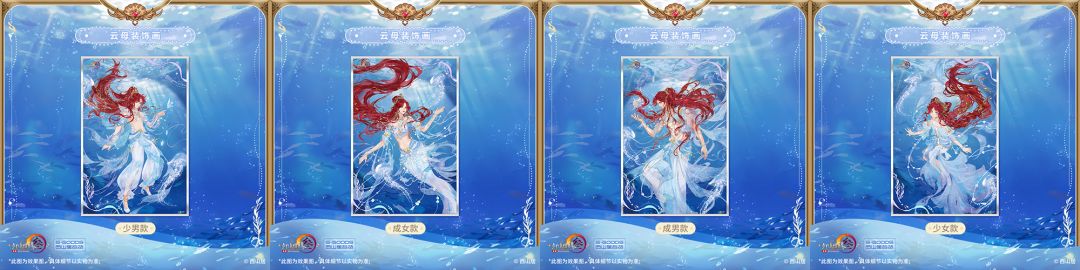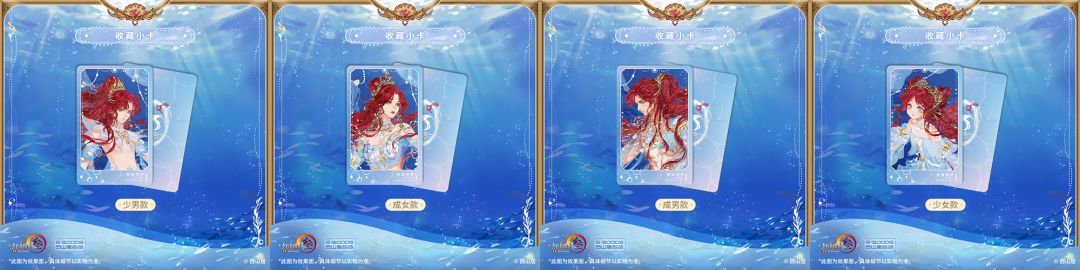 四体型胸像与特殊材质亮银卡的搭配,侠士们的配饰与宝石隐隐透出底部银质光泽,在贝壳与海浪波纹边框装饰下,独特靓丽。