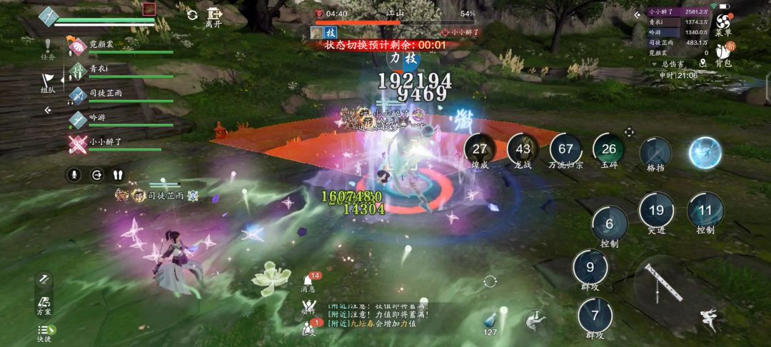 困难本中,江山依旧会每隔60秒切换一次形态,因此我们的应对策略还是和普通难度一样。当力/技值槽累积到三分之二以上时,就可以扔【仙人醉】来切换力技槽。只要不吃到太多技能,我们每轮只需扔1次【仙人醉】即可。