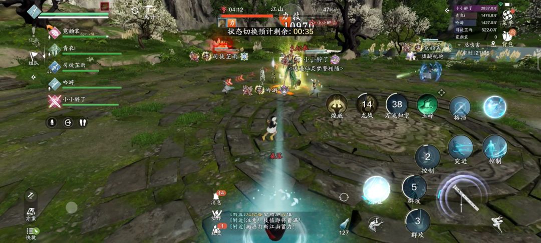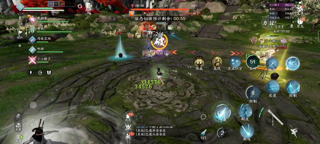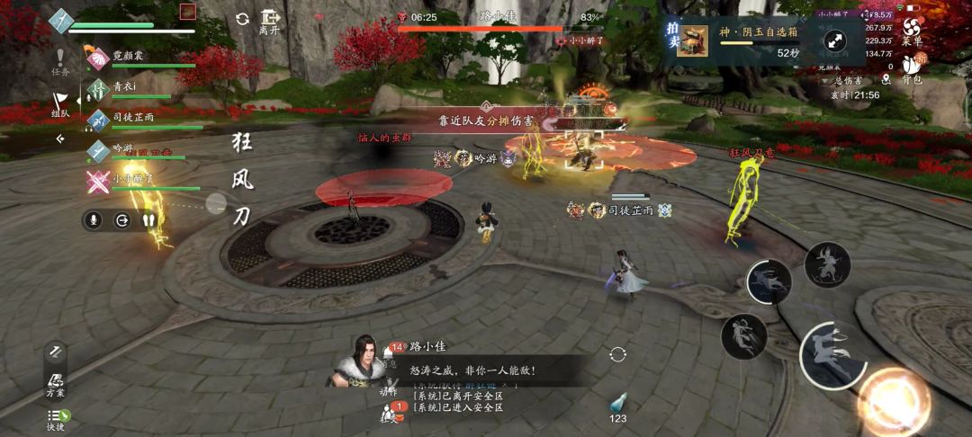 各位少侠在挑战时要格外注意江山的范围技能,要注意,江山的追击技能为范围技,因此叠满4层“破绽”的少侠一定要远离队友,避免误伤。