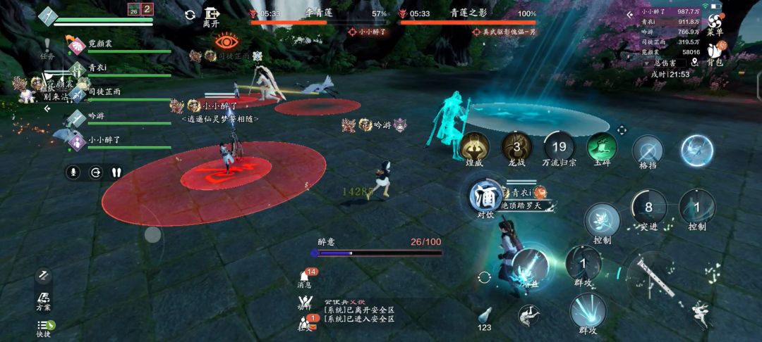 困难本中,当李青莲释放【万夫莫开】时,场上会再次出现仙鹤,如果让仙鹤进入月光将生成1只影鹤对少侠进行冲锋。因此,必须安排一位队友去拉仙鹤,避免仙鹤进入月光。而且,进入过月光的少侠将获得额外50层“醉意”上限,直至离开月光5秒后失去此上限。