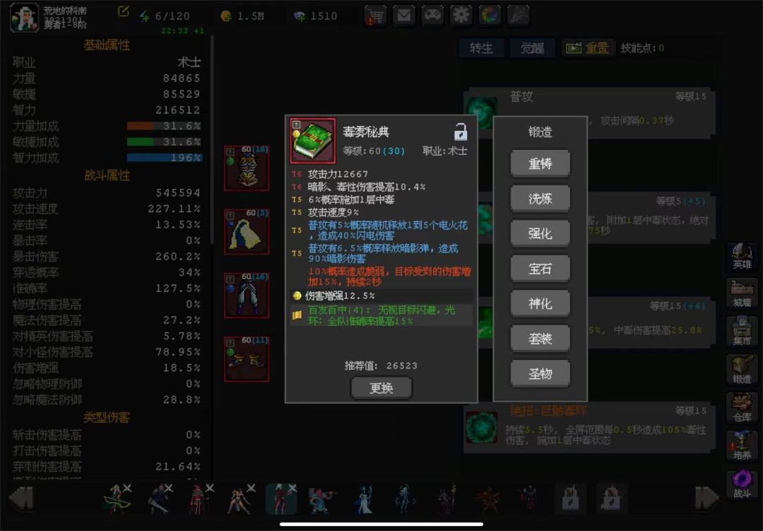 毒夫人依然是穿透加命中套装,命中套可以让毒夫人不用去管命中的问题,装备主堆攻速连击,穿透套可以让命中后方的敌人也触发觉醒符文,装备神话稍作了调整