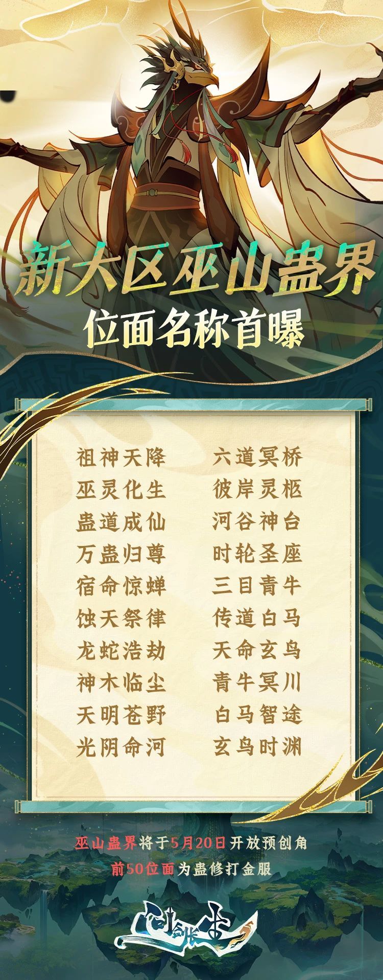《问剑长生》开服首批定制金钞将在5月23日即将开放的新大区巫山蛊界精准降落!新大区巫山蛊界预创角也会在5月20日开启,仙长可以前往选择自己心仪的位面抢注ID!