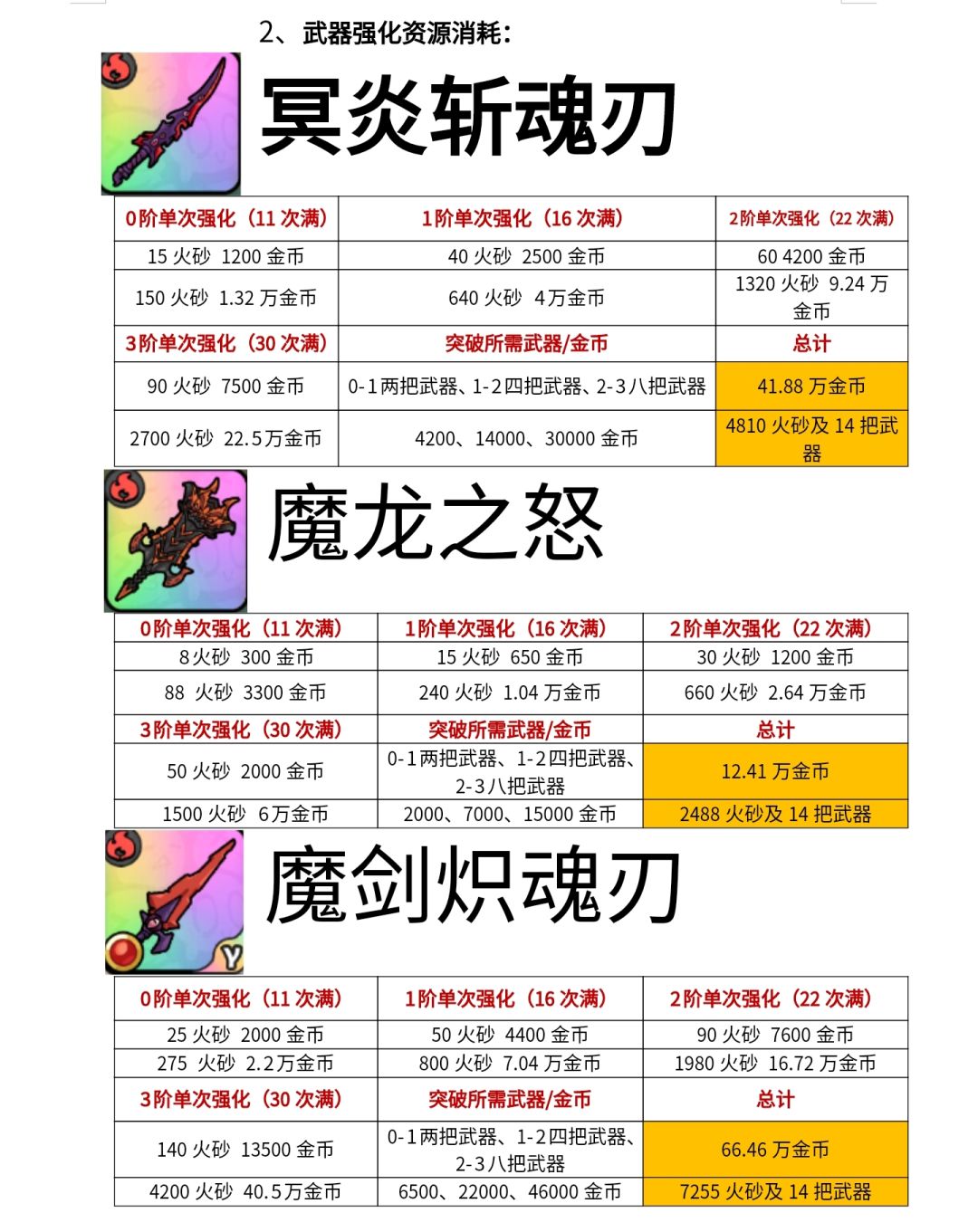 ⭐️武器强化资源统计(方便大家有一个肝资源的目标)