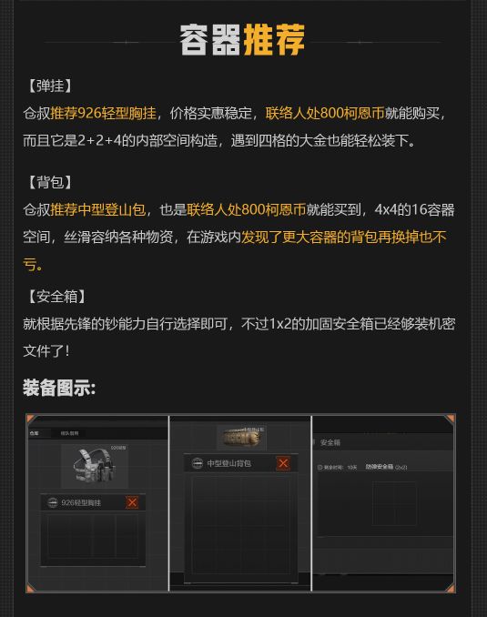 不用担心,今天仓叔就教大家如何从防具、容器、武器和补给品这四个品类选择适合初期行动的起装组合方案,让大家在突围中,更得心应手
