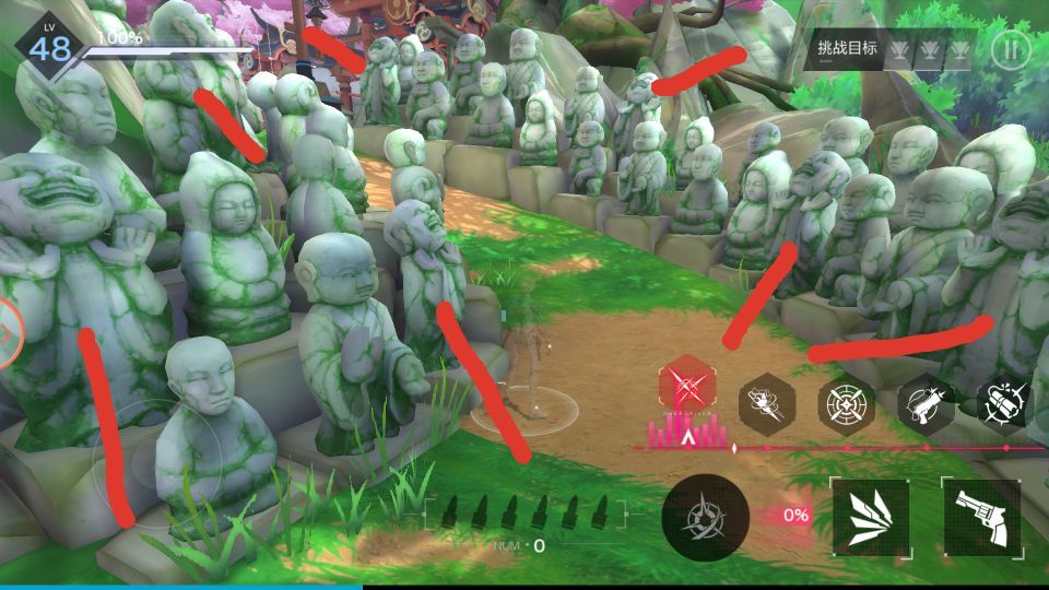 我觉得大多数小伙伴可能都会觉得,47级开放的樱岛地图和该地图的副本是风景最好看的吧,最让我惊艳的可能就是这个副本场景了,毕竟那么多佛像一下子就让我联想到了《西游记》里误入小雷音和大鹏鸟pk十八罗汉,不过细看的话,发现美工小哥哥们还是有点偷懒了(偷笑)
