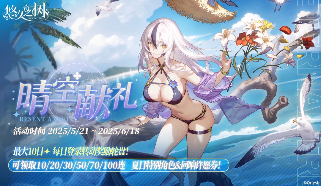 参与满10次「晴空献礼」活动,可以获得至少10×10+2次100连保底=300连免费许愿机会!
