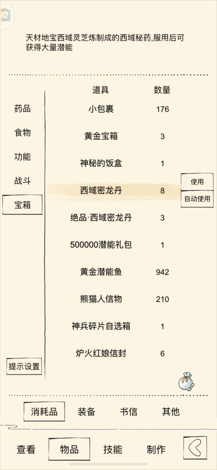 然后开始囤了不少潜能,这边是绝品灵芝大概已经有3+4+6,13个x30,也就是390w(暂时这么多,无量还没换)