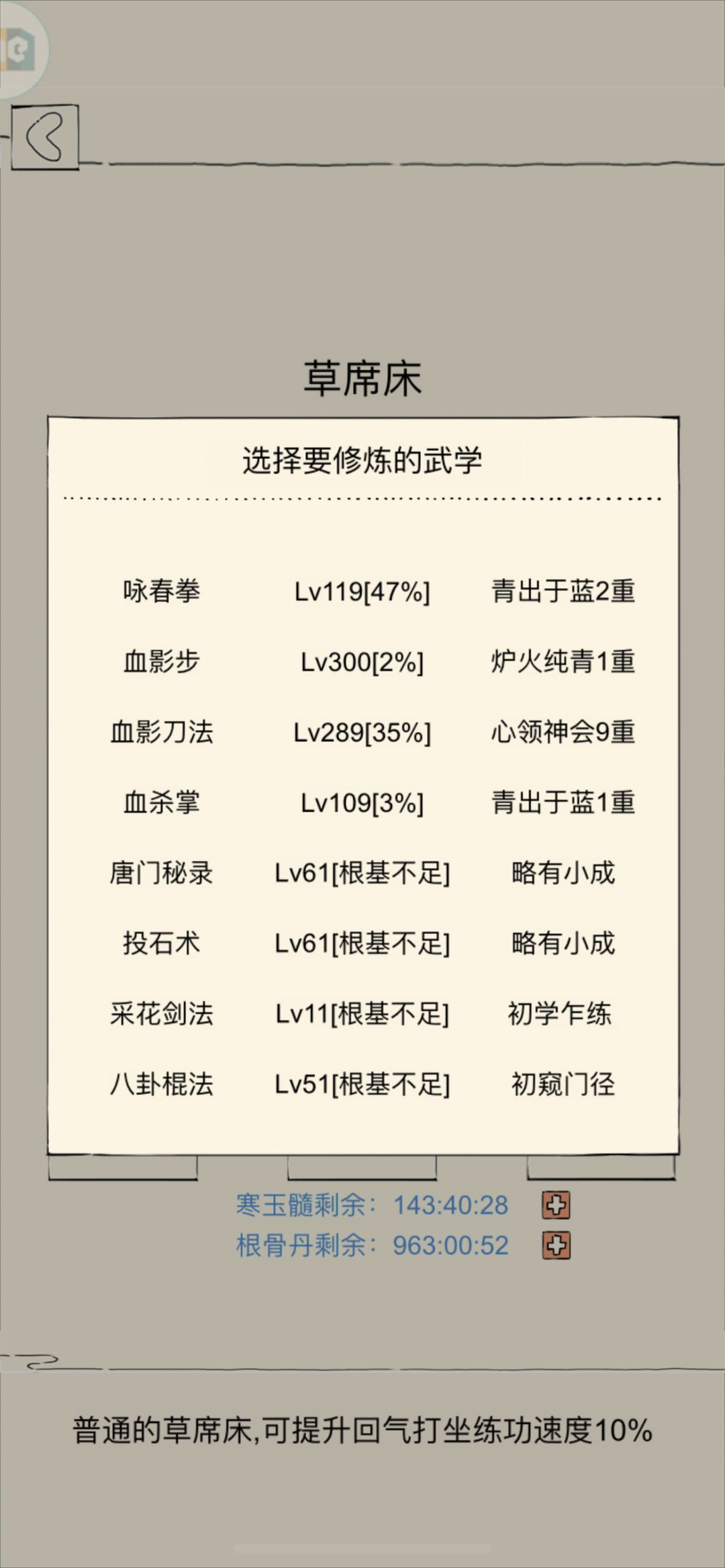面板的就直接给刀和拳,然后其他的99级,计算无误是够的,24个雇佣券,刚开始掉东海,如果出了太白就玩剑去了(不是背叛刀,二轮再玩刀,到时候新领悟出了,我囤一堆书签)如果没出就继续牢。