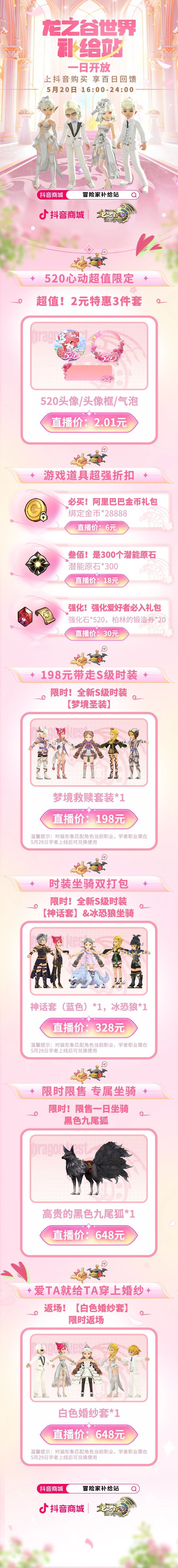 5月20日16点抖音直播间,龙之谷世界百日回馈,限时1天。