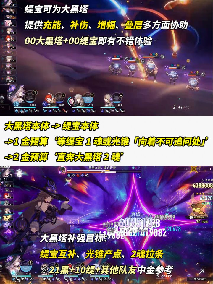 影响大黑塔游戏体验的从来就不是副C位,有那刻夏自然更好,但用黑塔、希露瓦同样不弱。真想爽玩,记住1个需求,你能够匀出缇宝给大黑塔配队!否则缺失所影响的游戏体验,你加金抽光锥、星魂依旧很难弥补。