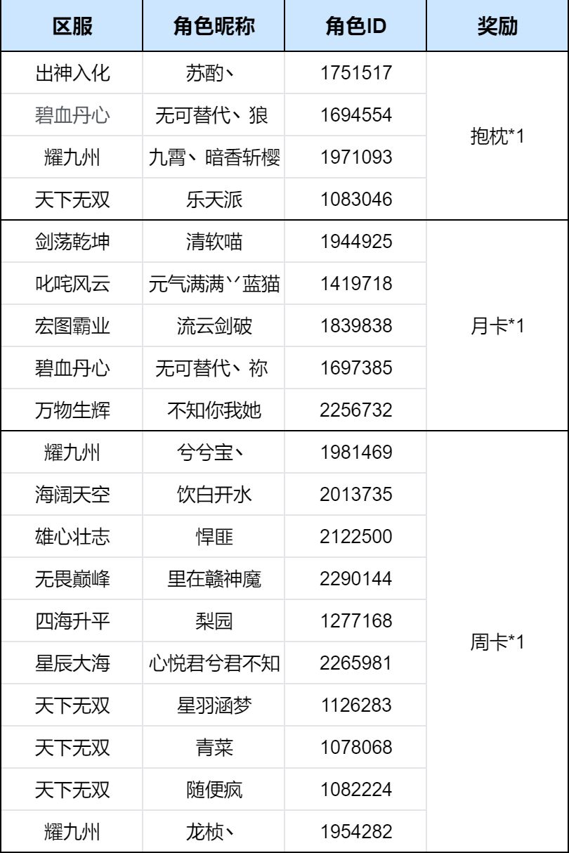 6、活动期间到奖励发放完毕前,请不要更改角色名或区服,避免奖励发放失败。
