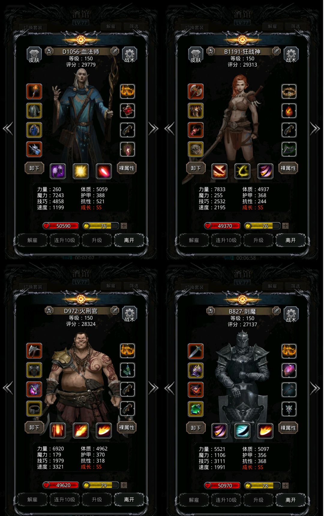 烈枪选择堆技,吸血+回春>承伤,轮流减甲boss+一个小弟,蛮荒7群吸无压力。
