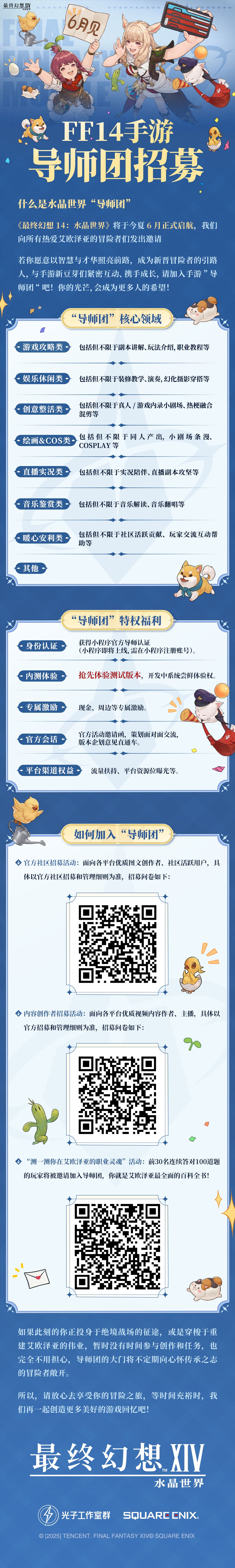 参与导师团活动的冒险者,可以在后续推出的<FF14手游官方社区>小程序中获得头衔认证,小程序是集WIKI攻略、资讯论坛、游戏工具于一体的一站式官方社区,还有【专属演技教材】可以获取。