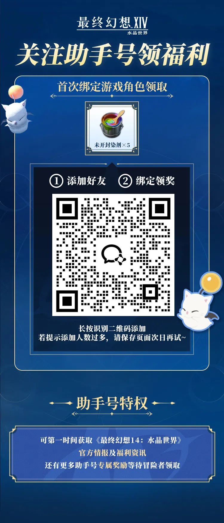 冒险者们可先扫码添加<官方企微小助手>,快人一步获取一手资讯,还能提前领取莫古力专属好礼——未开封染剂x5!
