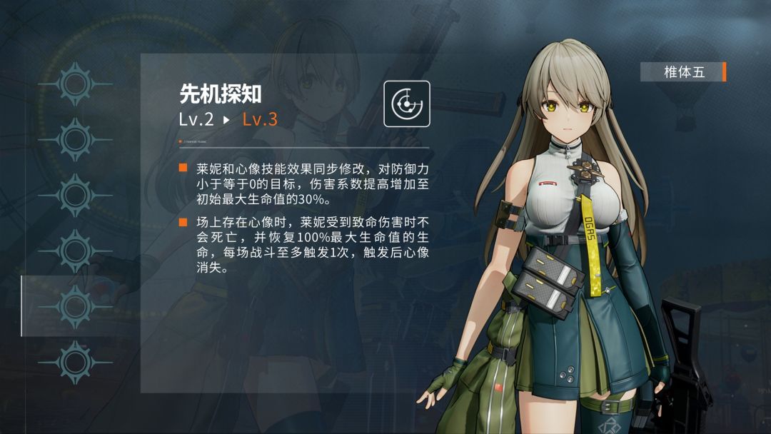 5椎:把每次攻击的生命倍率从20%提升到30%,并且赋予莱妮一次复活效果。总伤害提升约为6%